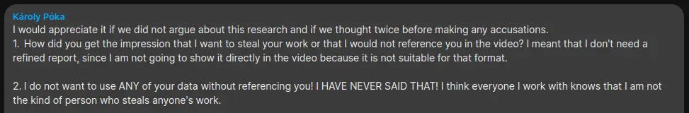Karoly and Adam claimed they would never use my material without crediting me, while simultaneously: Karoly used images from my unfinished, INTERNAL DRAFT reports on YouTube. Adam had presented my draft material at the Cosmic Summit event 2024.