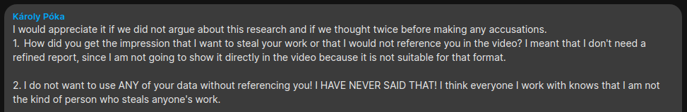 Karoly and Adam claimed they would never use my material without crediting me, while simultaneously: Karoly used images from my unfinished, INTERNAL DRAFT reports on YouTube. Adam had presented my draft material at the Cosmic Summit event 2024.